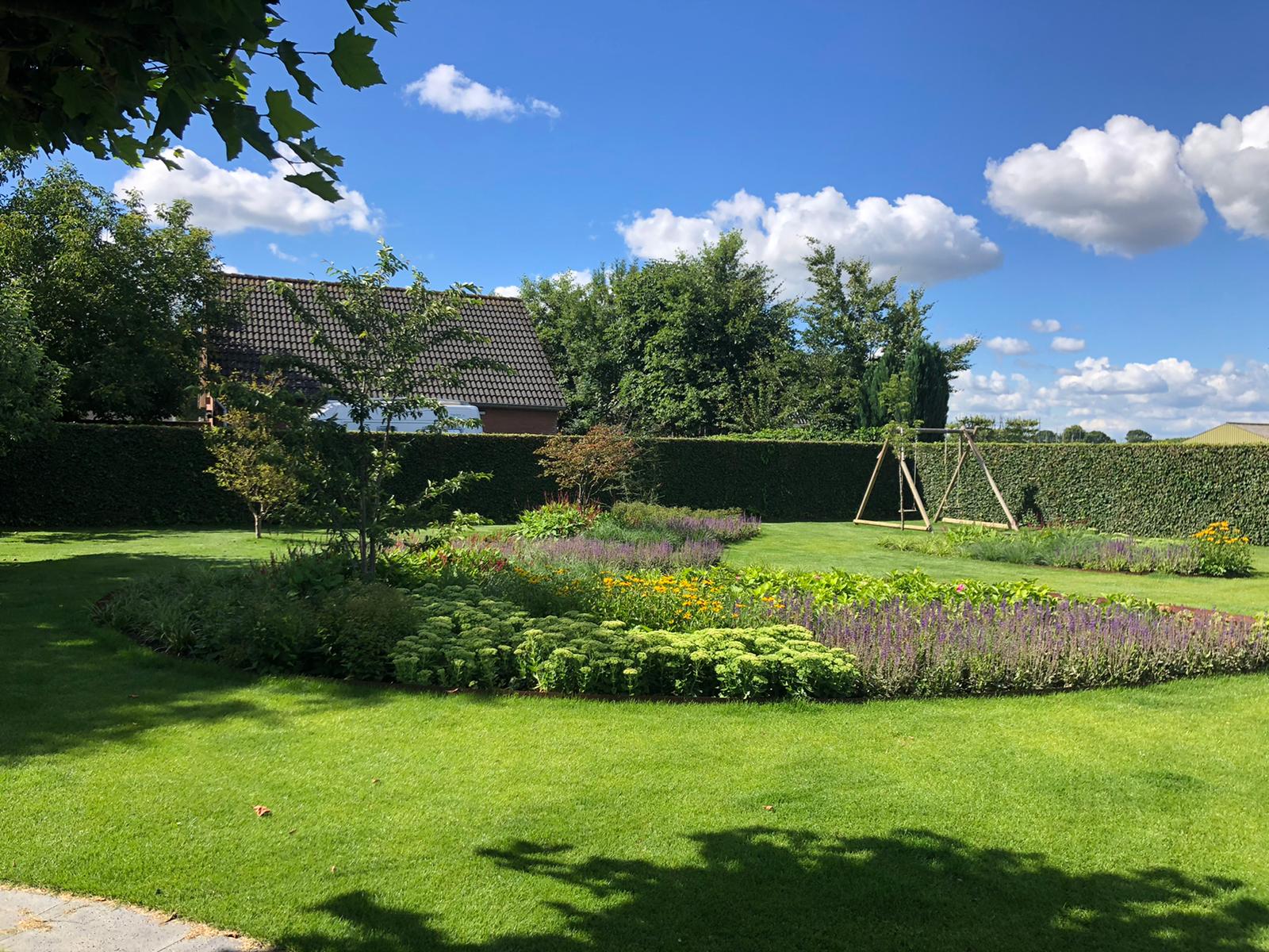 Een dwaaltuin waarbij elk zicht een verrassing is. Een sobere opzet met kleurrijke en eenvoudig te onderhouden plantvakken.